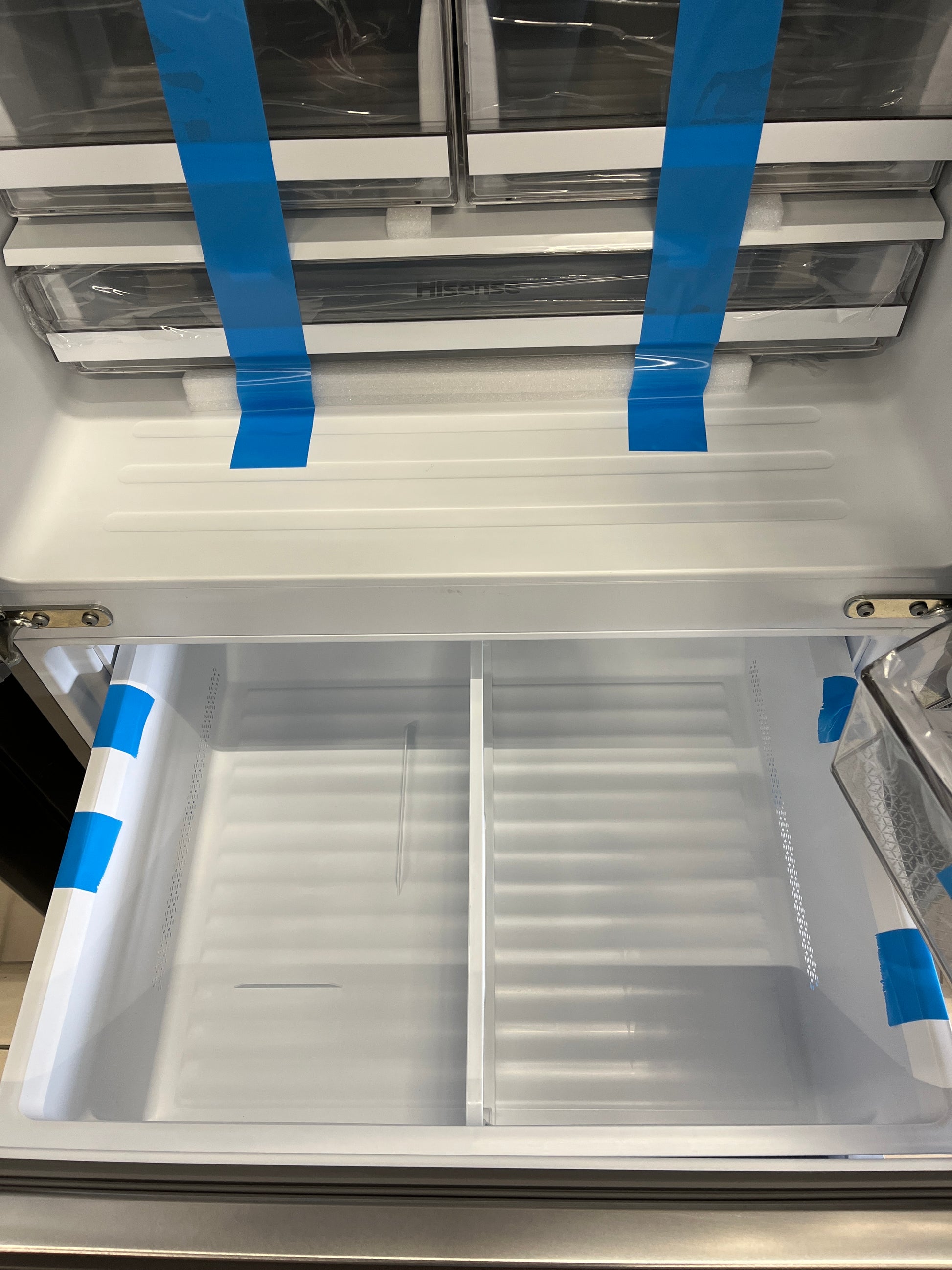 Brand: Hisense Model: RF21A3FSE Condition: Open Box The Hisense RF21A3FSE is a spacious 21 cu. ft. French-door refrigerator designed to bring modern style and practicality to your kitchen. This model combines sleek stainless steel looks with advanced cooling features for optimal food freshness. With flexible storage solutions and energy-efficient performance, it offers convenience and reliability for everyday use. Key Features: - French-door design for easy access and organized food storage - Adjustable glass shelves to accommodate large or tall items - Humidity-controlled crisper drawers to keep fruits and vegetables fresher for longer - Full-width pantry drawer for deli items and beverages - LED interior lighting for clear visibility of all contents - Digital temperature controls for precise cooling management - Energy-efficient operation to help save on utility bills Specifications: - Total capacity: 21 cu. ft. - Refrigerator capacity: 14 cu. ft. - Freezer capacity: 7 cu. ft. - Number of shelves: 6 (including adjustable shelves) - Number of drawers: 3 (including crisper and pantry drawers) - Ice Maker: Yes - Energy Star Certified: Yes Width: 30 Depth: 34 Height: 67 Colour: Stainless Steel