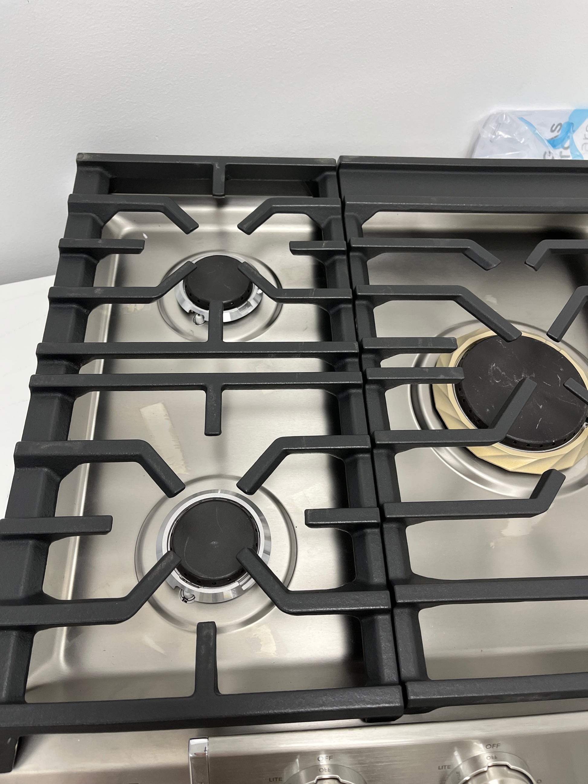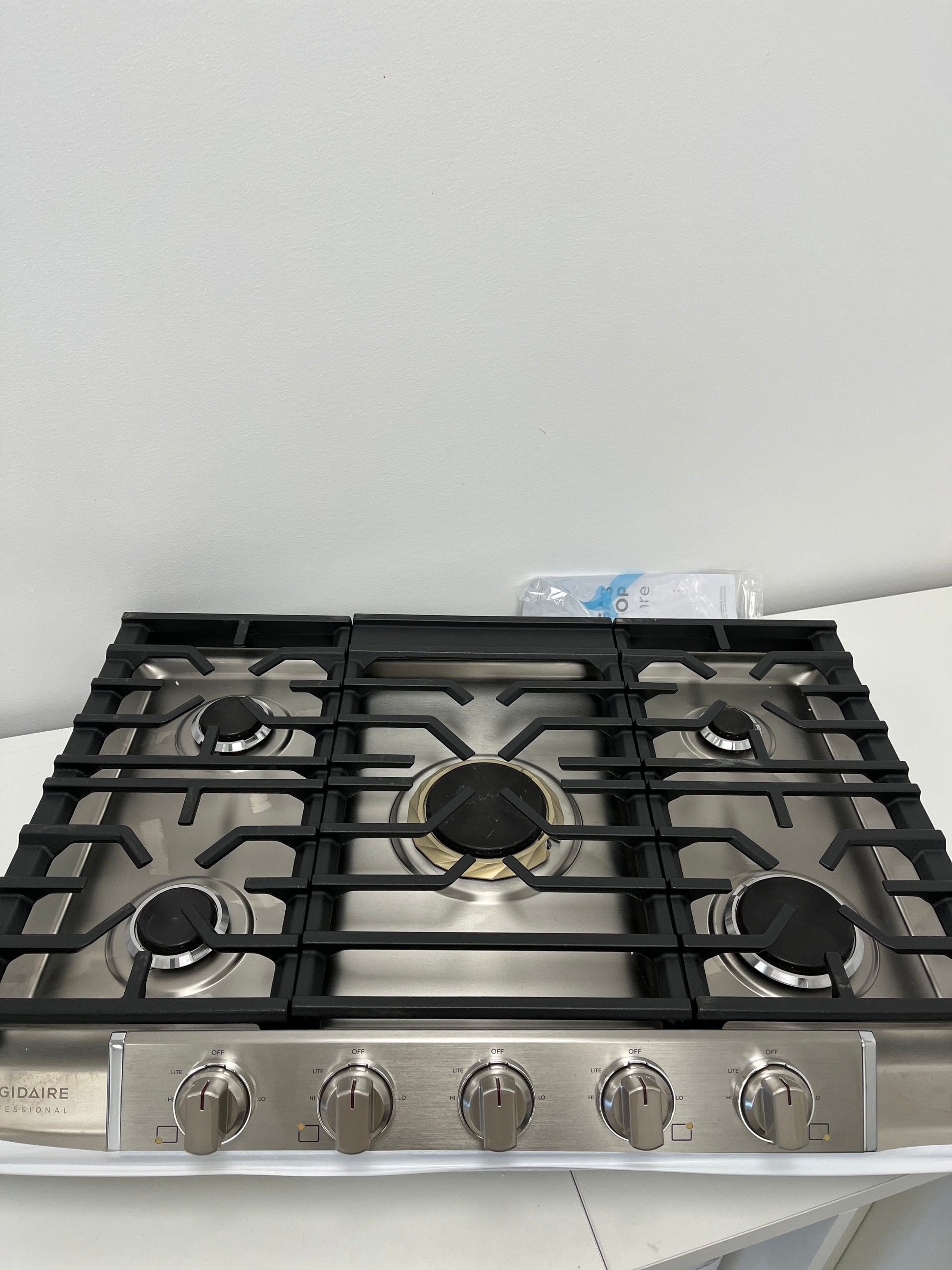 Brand: Frigidaire Model: PCCG3080AS Condition: Refurbished The Frigidaire PCCG3080AS is a versatile 30-inch gas cooktop designed to bring professional-grade cooking to your kitchen. Featuring robust stainless steel construction and precision control, this model ensures durability and convenience. It’s an ideal choice for home chefs seeking both performance and modern aesthetics. Key Features: - Five sealed burners: Allows for versatile cooking, from simmering to high-heat searing - Continuous cast-iron grates: Easily slide pots and pans between burners without lifting - Precision flame controls: Adjust each burner for exact heat levels - SpillSafe cooktop: Contains spills for easy cleanup - Electronic ignition: Reliable and quick burner starts every time - ADA compliant: Designed for accessibility and ease of use - Dishwasher-safe knobs and grates: Simplifies maintenance Specifications: - Number of Burners: 5 - Fuel Type: Gas - Control Location: Front - Cooktop Surface Material: Stainless Steel - Grate Material: Cast Iron Width: 30 Depth: 21 Height: 2 Colour: Stainless Steel